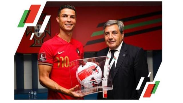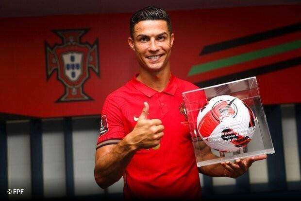 对爱尔兰队一战是在主场,明知道C罗有可能破门,打破109球纪录,可葡萄牙足协准备得不充分。赛后,为了纪念C罗成为全球绝对第一人,葡萄牙足协主席费尔南多·戈麦斯向C罗颁了奖。奖品是玻璃盒子里装着那场比赛的一只用球,盒子上刻着比赛日期。
